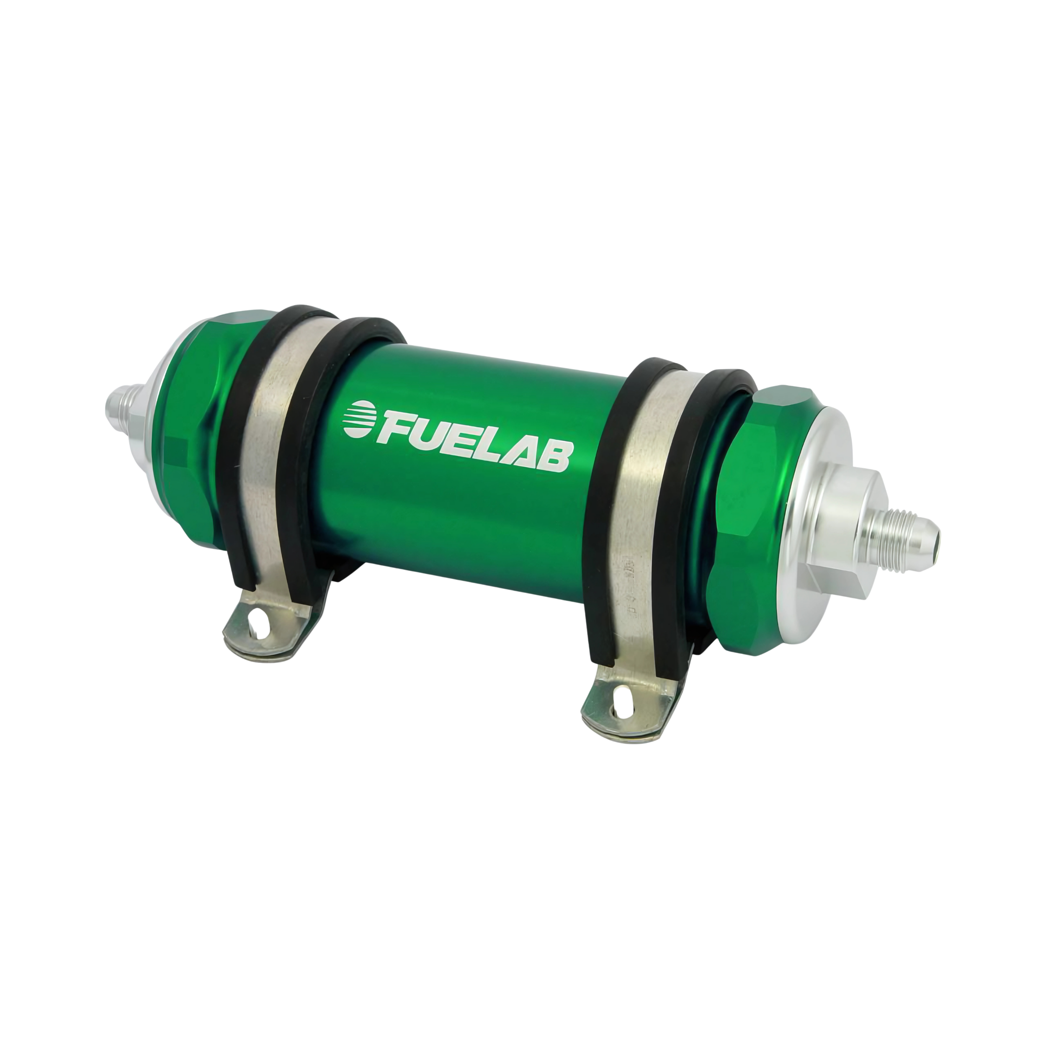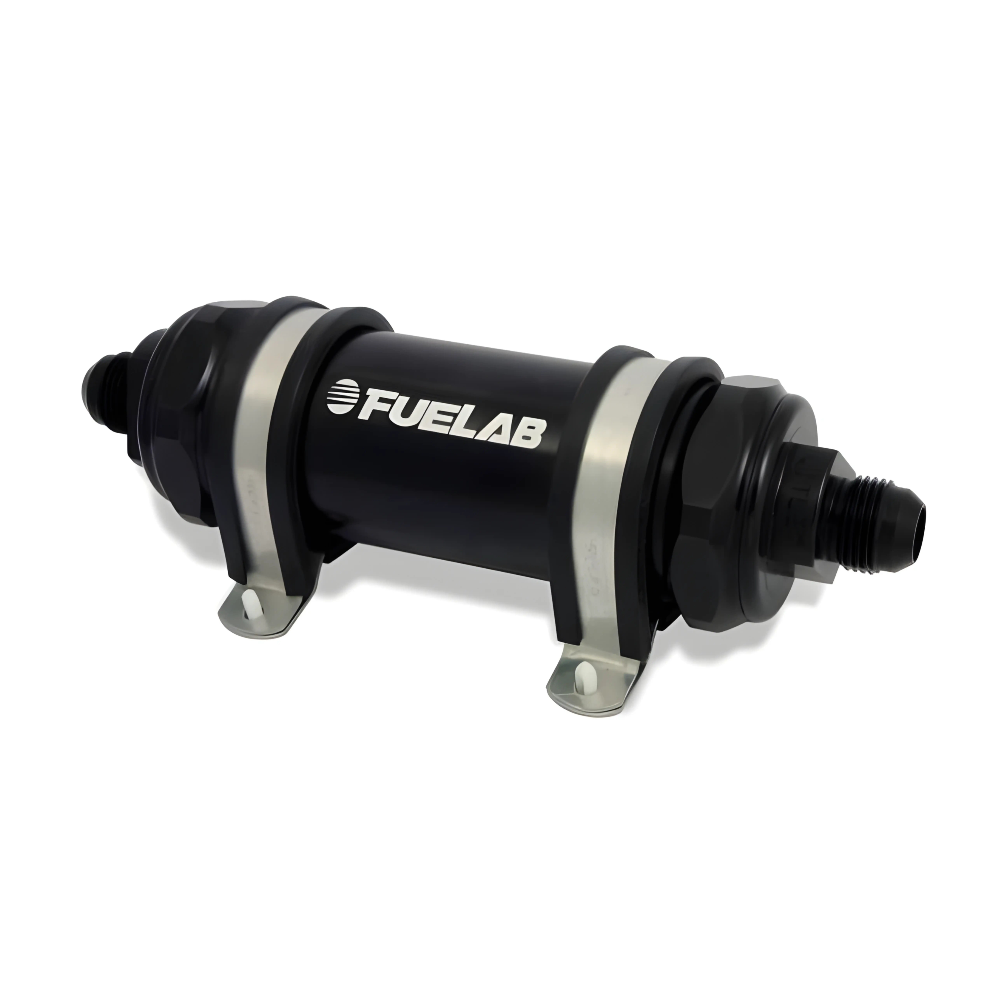 6AN inlet/outlet Fuelab filter with long (5 inch) 6 micron / Micro-Fiberglass Element
