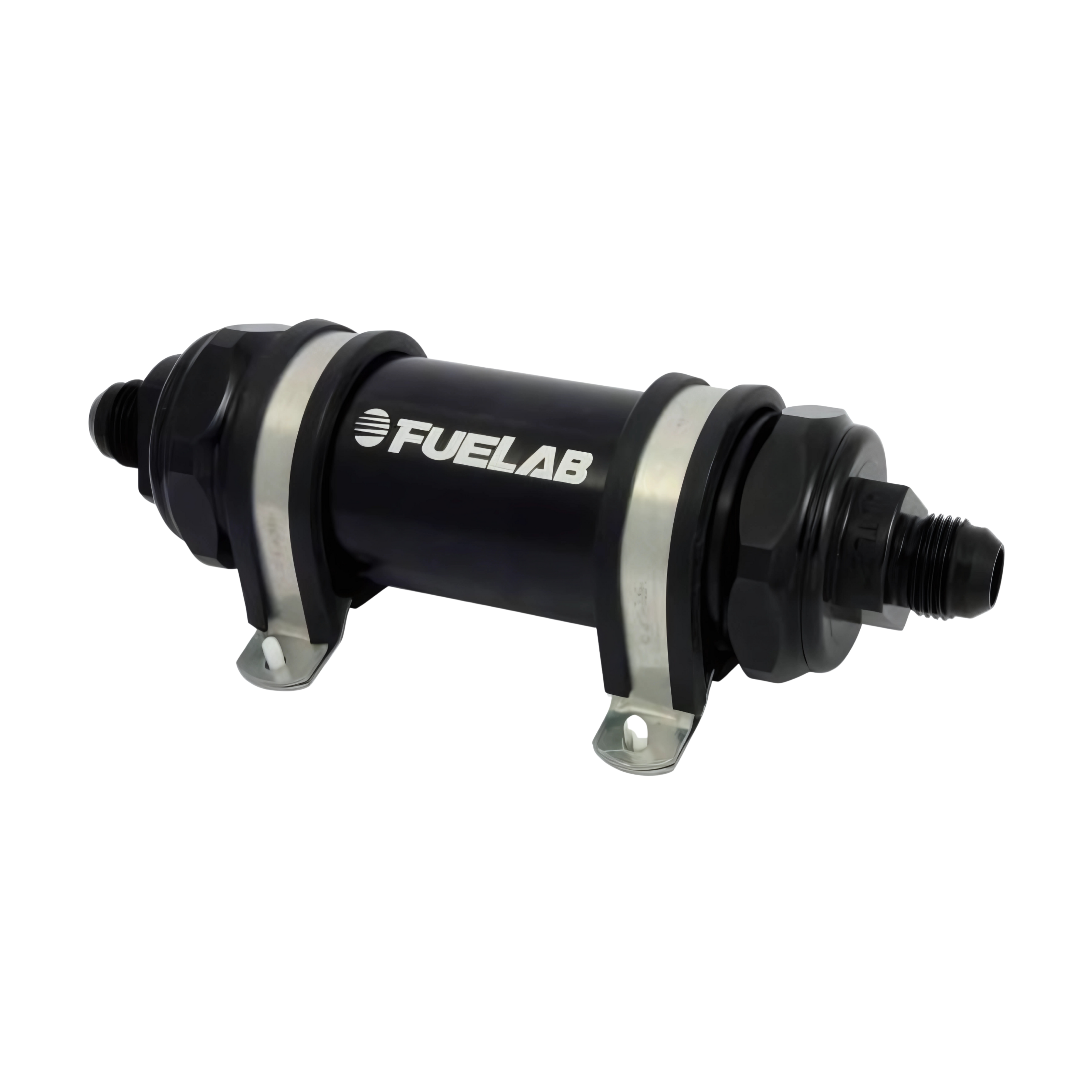 8AN inlet/outlet Fuelab filter with long (5 inch) 40 micron / Stainless Steel Element