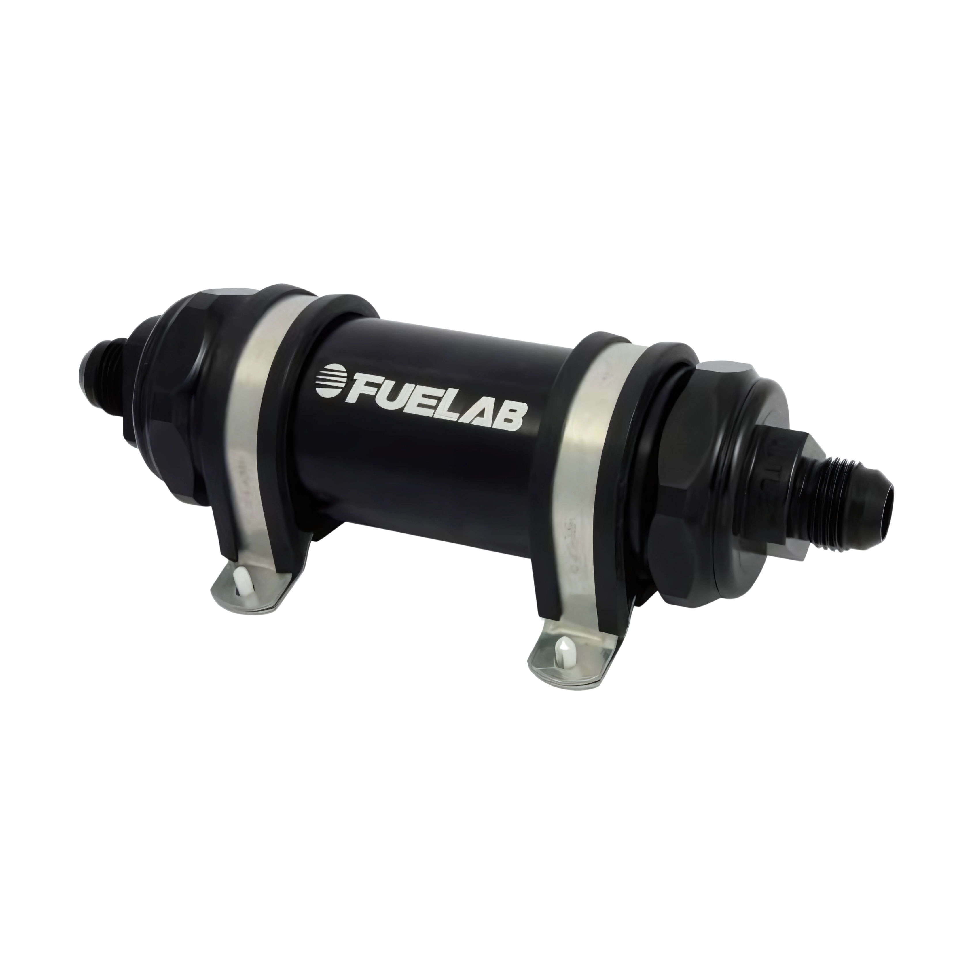 8AN inlet/outlet Fuelab filter with long (5 inch) 6 micron / Micro-Fiberglass Element