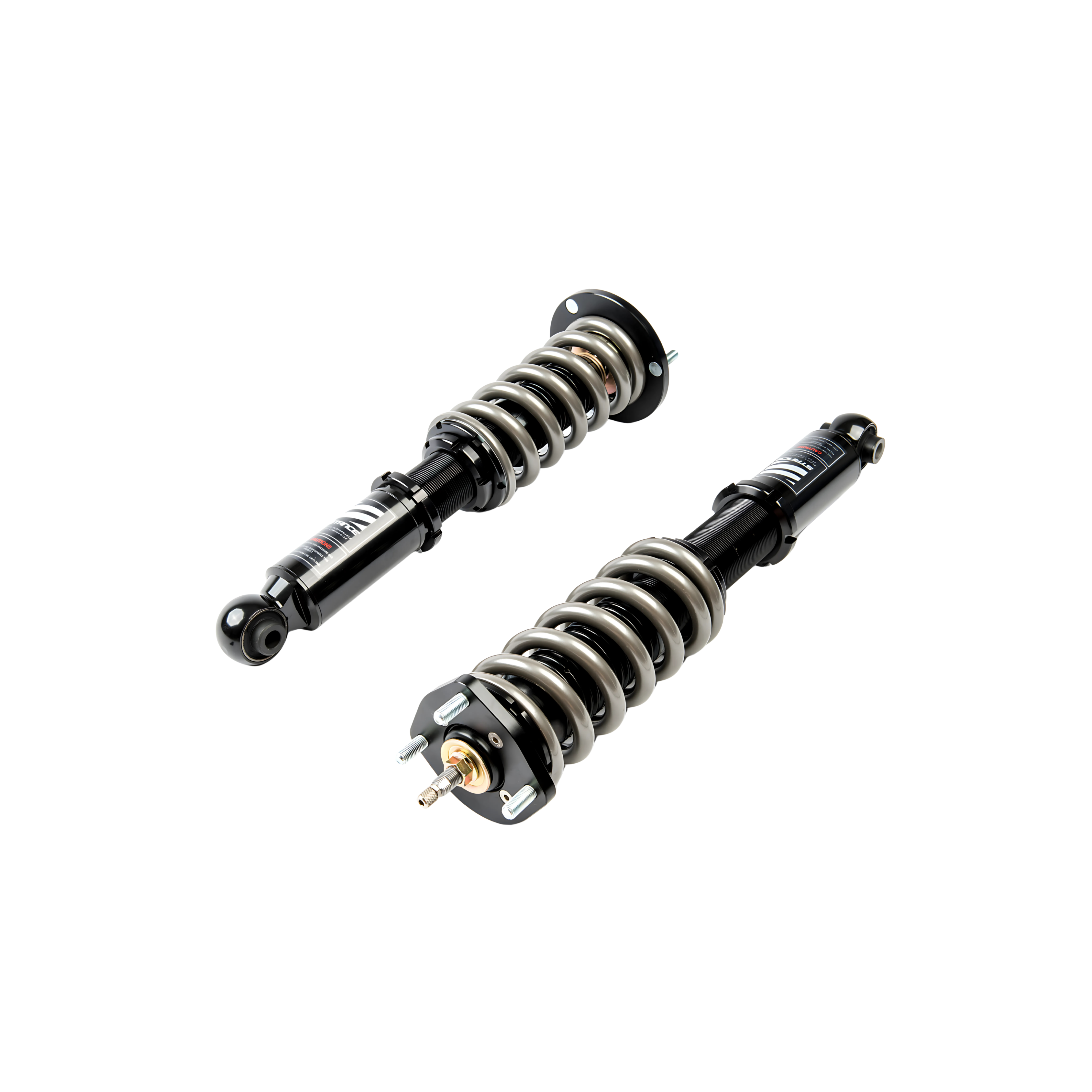 A pair of high-performance suspension coilovers, specifically designed for use with vehicles like the Lexus GS300/400 JZS160/JZS161. These coilovers are essential for car enthusiasts looking to improve the handling and ride quality of their vehicle, offering adjustable height and damping control. They are particularly valued for their ability to provide a custom driving experience by allowing fine-tuning for different driving conditions, whether on the street or at the track.