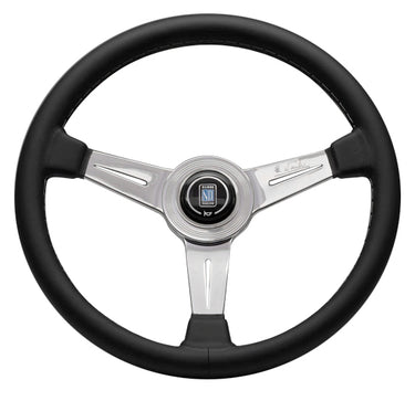 Nardi Classic - 360mm (Black Leather / Satin Silver Spokes / Black Stitching)