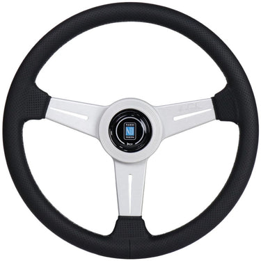 Nardi Classic Steering Wheel - 340mm (Black Perforated Leather / Silver Spokes / Grey Stitch)