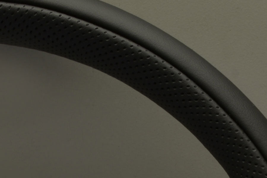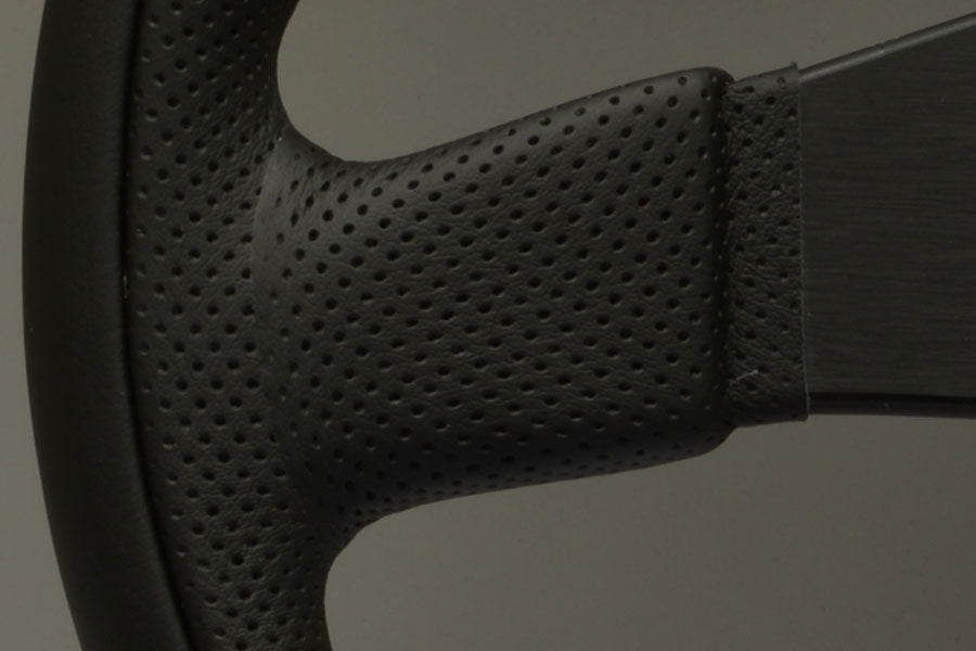 Black leather/Black punched leather/Black aluminium ring & spokes
