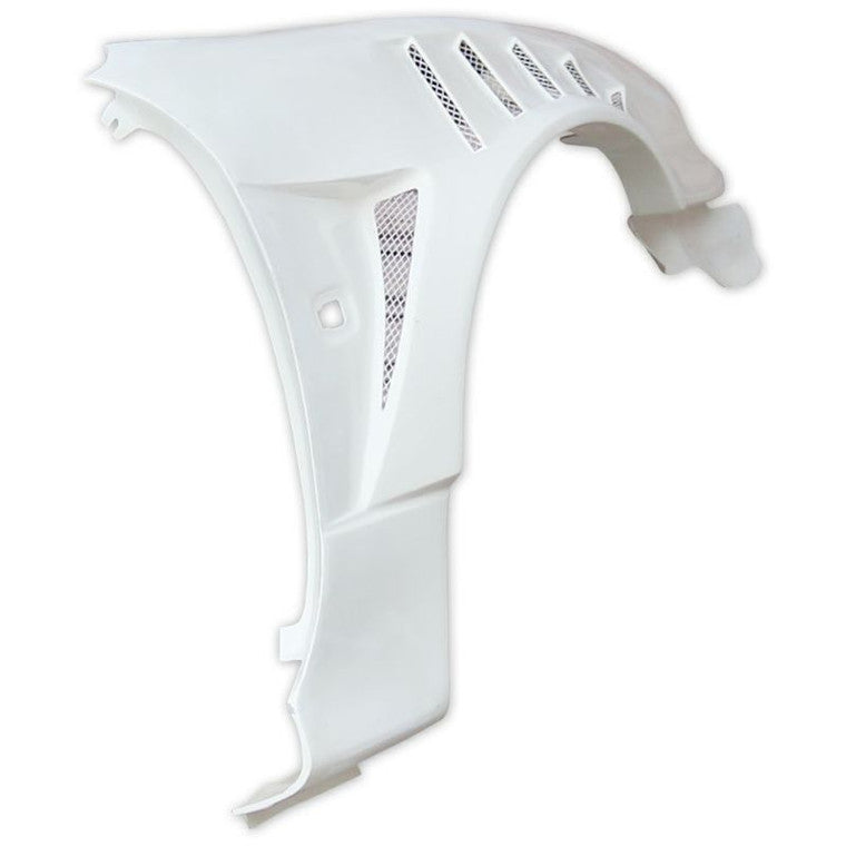 Upgrade your Nissan S15 Silvia with the Origin +55mm Sameera Duct Front Fenders, designed for a bold and aggressive look. These fenders feature unique top fin-style vents along the top side of the fender, paired with a single vent on the back side of the front wheel, giving your S15 a distinct, race-inspired appearance. With all the style and all the vents, these fenders are also pre-cut for the OEM side marker, ensuring easy integration with your vehicle’s factory components.