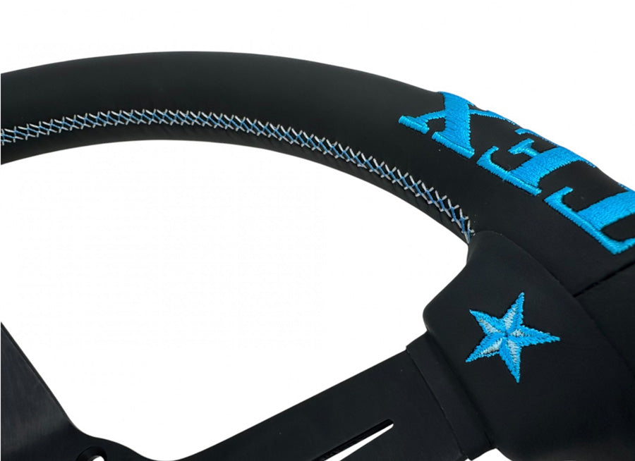 Vertex 6 Star Steering Wheel - Vertea Blue (340mm x 70mm Deep / Leather )