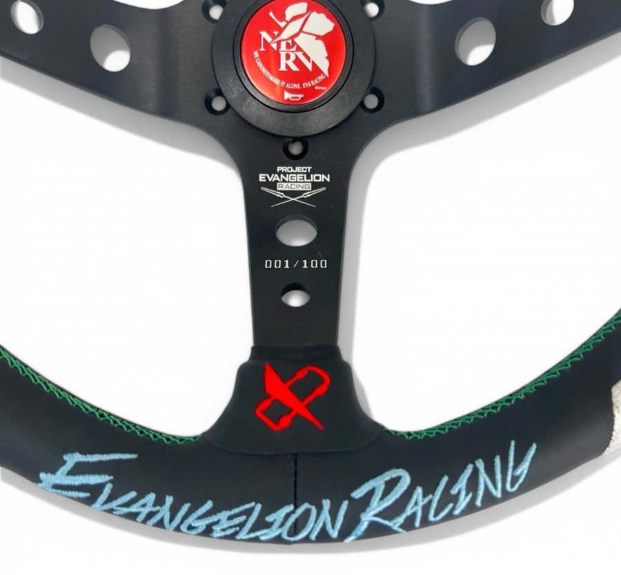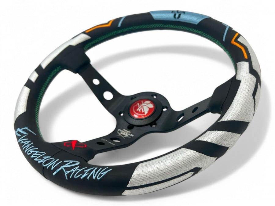 The Vertex x Evangelion Racing Steering Wheel - Version 4 (Rei Ayanami Model) is a collector-grade collaboration that fuses motorsport function with iconic anime culture. Designed by Vertex Japan in partnership with Evangelion Racing, this 330mm wheel features a 90mm deep dish, wrapped in high-quality leather, and finished with Rei Ayanami's signature blue and white theme.
