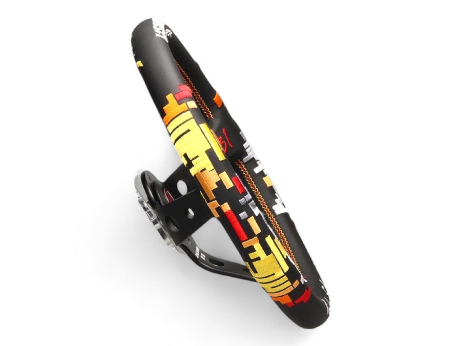 Wrapped in high-quality leather, it provides a comfortable yet durable grip under high-performance conditions. The design reflects the DNA of Shibata Motorsport fused with the craftsmanship and quality Vertex is known for.